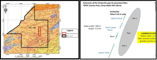 Upon receipt of approval for bulk sampling and pilot mining of the kimberlite dikes and pipes, YDMC began mobilizing funds, equipment procurement and related logistics for the its most desired program. In June 2022, the Company managed to secure some funding and equipment procurement and started the excavation of overburdens and underlying eluvium on top of the kimberlite dikes. At least 3500 m3 of kimberlite eluvium was excavated and stockpiled for processing by the end of the reporting period.